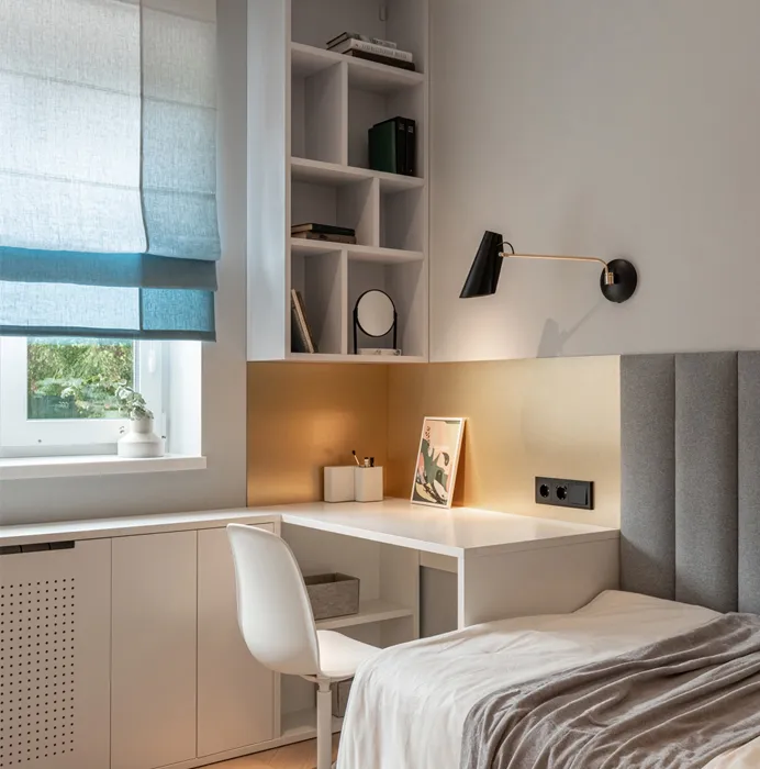 Благодаря продуманному дизайну и вниманию к деталям, комната превратилась в идеальное место для отдыха, работы и творчества. Как отметила команда проекта, даже такие элементы, как розетки и выключатели, сыграли важную роль в создании целостного образа.